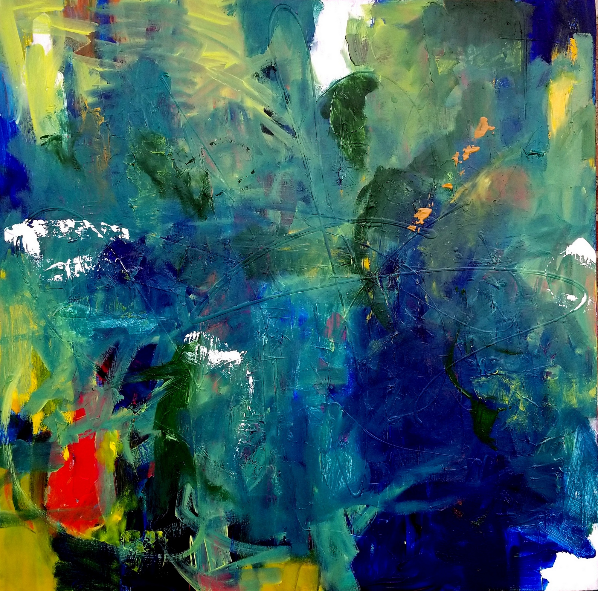 I paint intuitively by embracing spontaneity to allow passionate paintings to be born through a transforming layering process of acrylics and inks. Each layer informs the next story of paint. In addition to layers often you will find sand, coffee, glass beads or perhaps even a gum wrapper invoking the question of what story is being revealed. I paint what I feel, how I feel, and each found object in my art continues that story. It is my hope that you find a connection to my work and might, if only for a moment, become captivated and feel something within yourself. The art I create are visual expressions of my inner soul, spirit and passion. Once a corporate entrepreneur trapped inside a suit and wearing heels, the desire to put my feelings, thoughts, and emotions on canvas became too powerful. The life-changing event that turned the corporate pen into a paintbrush was the dark world of Alzheimer’s that struck my mother. I could not wait any longer to paint in the event that world captured me as well. Leaving the boardroom behind, what has emerged is a new language expressed on canvas. This language expresses the freedom and unbound passion to create and let my art direct itself without fear or influences that has previously stifled my intuitive style.